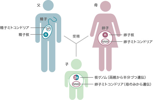 子の性に関係なくミトコンドリアゲノムは母親に由来する。